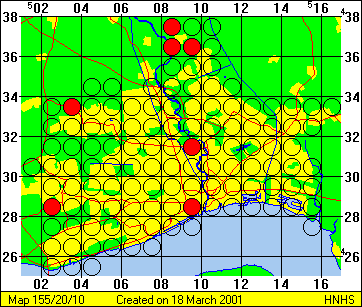 Possibly under recorded, usually on walls or similar. Distribution does, however, correspond well with that noted by Fraser!